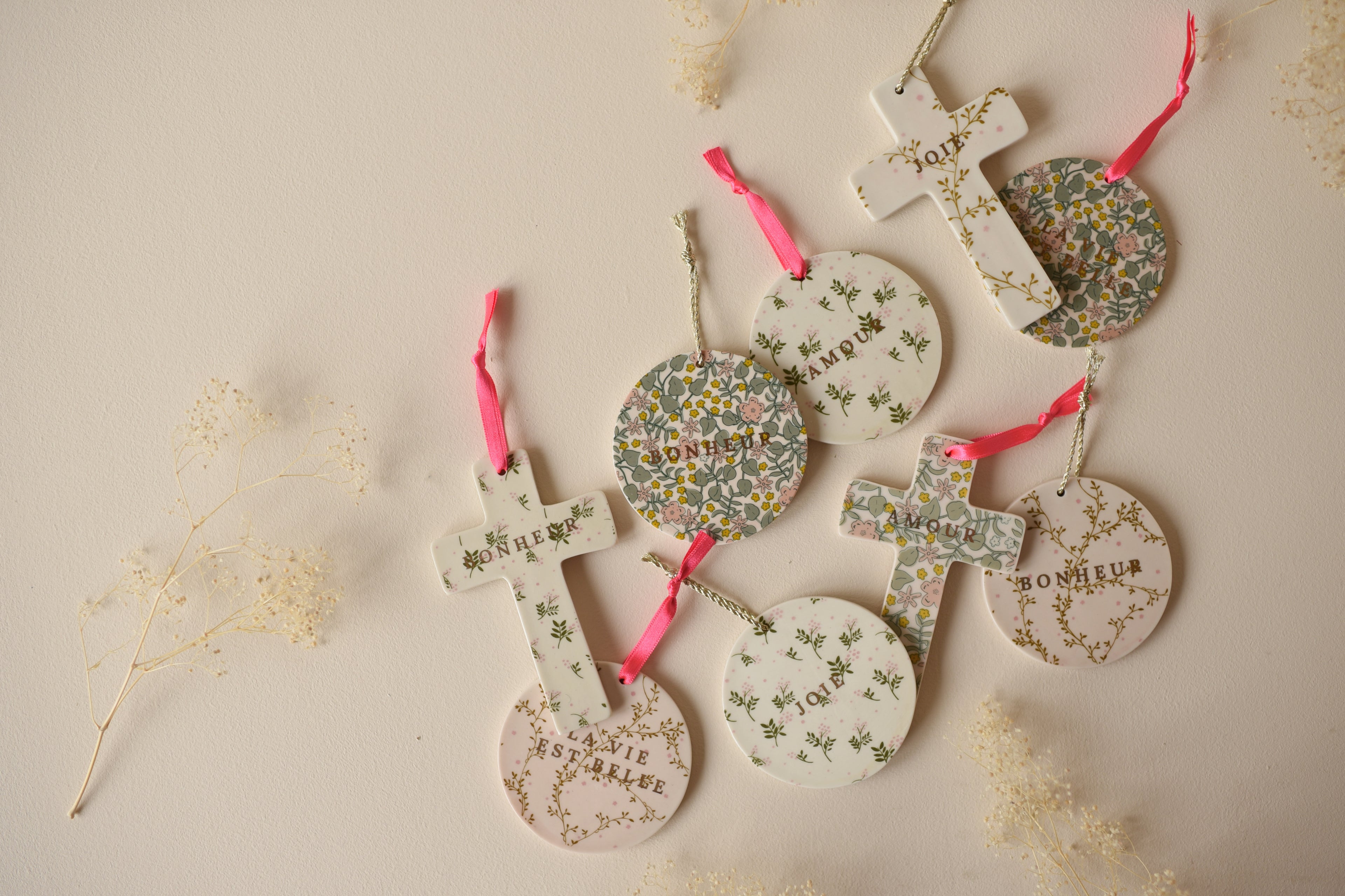Délicates et symboliques, nos croix et amulettes en porcelaine sont pensées comme de véritables objets de cœur. Façonnées avec soin, elles allient la finesse de la porcelaine à la force des symboles qu’elles portent, entre tradition et création contemporaine.